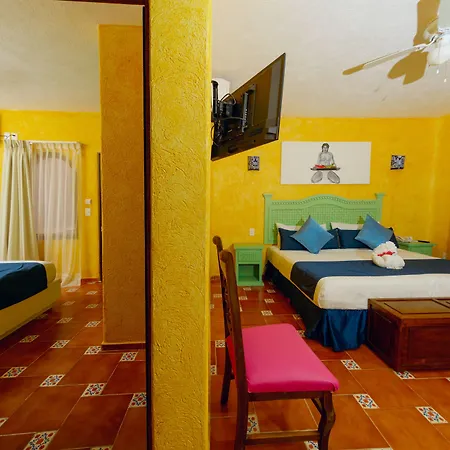 De kamers van dit pand in Tulum Pueblo zijn voorzien van airconditioning, evenals een minibar. Er zijn een apart toilet en een douche in de badkamers.